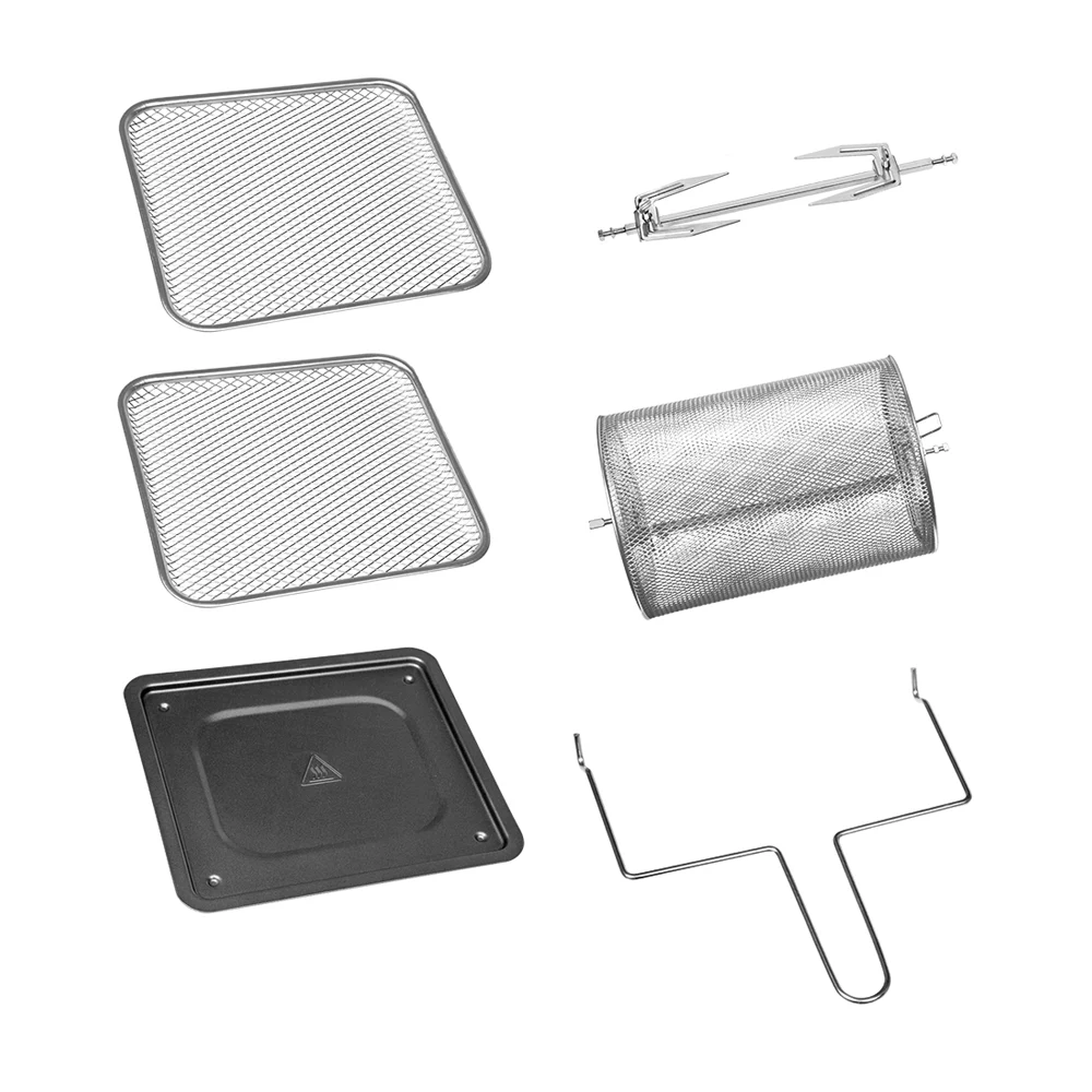 Con una potenza di 1800W e la ventola posizionata sopra la resistenza, distribuisce il calore in modo uniforme per cotture ultrarapide e in contemporanea senza avere un inutile spreco di energia; inoltre è anche dotato di un cestello rotante per friggere patatine, pesce o qualsiasi altro alimento.