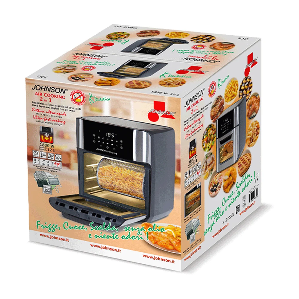 AIR COOKING di JOHNSON è una friggitrice ad aria e allo stesso tempo un forno digitale che permette di cucinare in modo sano e senza rinunciare al sapore.