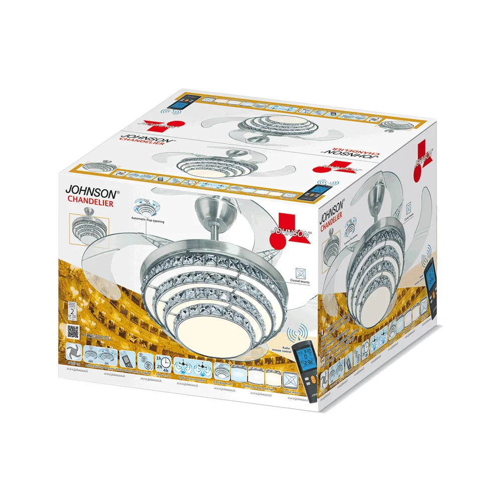 CHANDELIER è un ventilatore da soffitto con luce dal design elegante, ideale per ogni ambiente della casa o dell’ufficio.