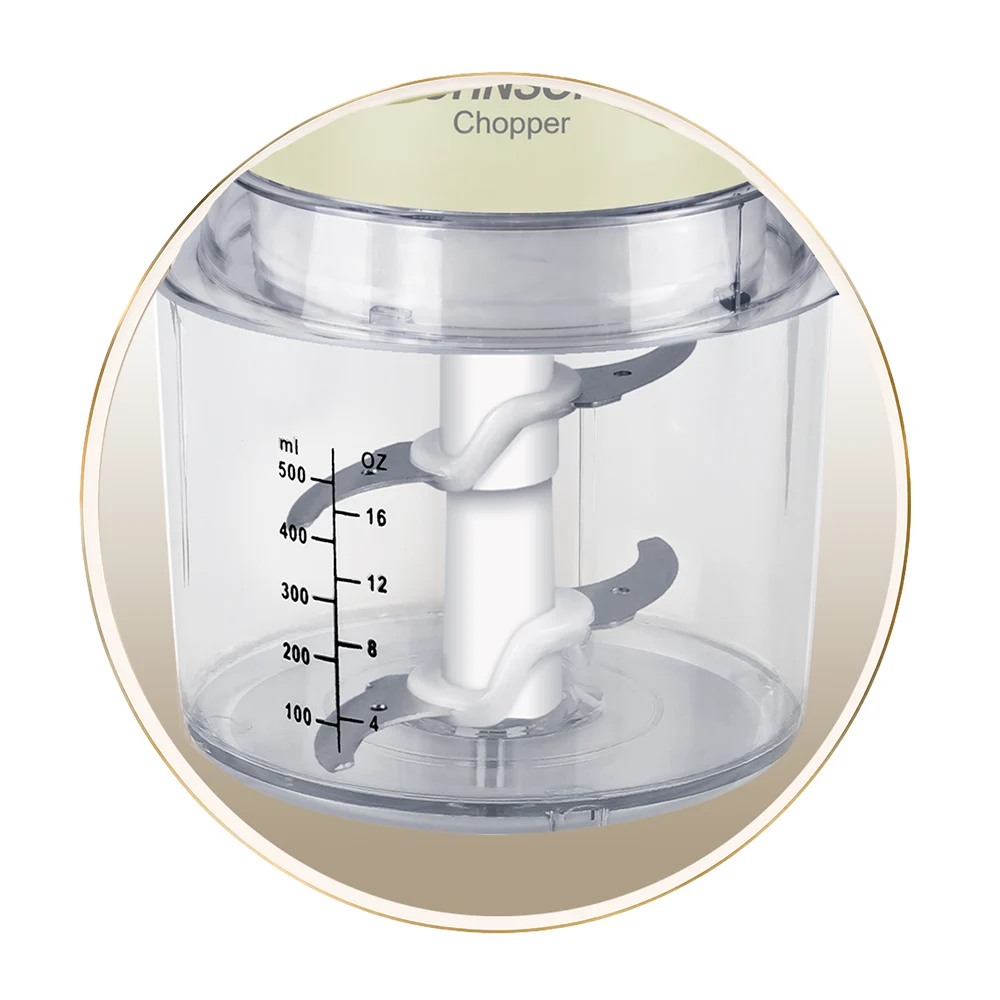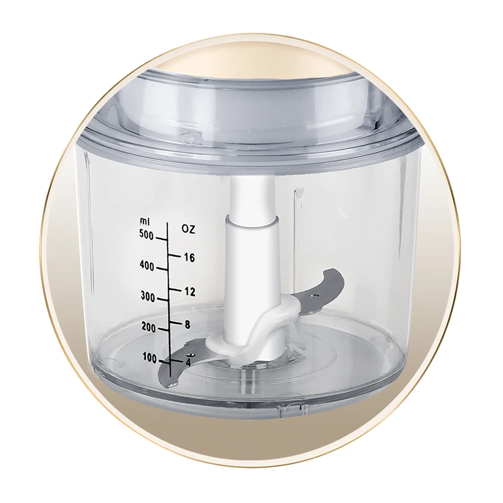Con una potenza di 400W e una capacità di 0,5L, è perfetto per tritare, sminuzzare e preparare ingredienti in pochi secondi.