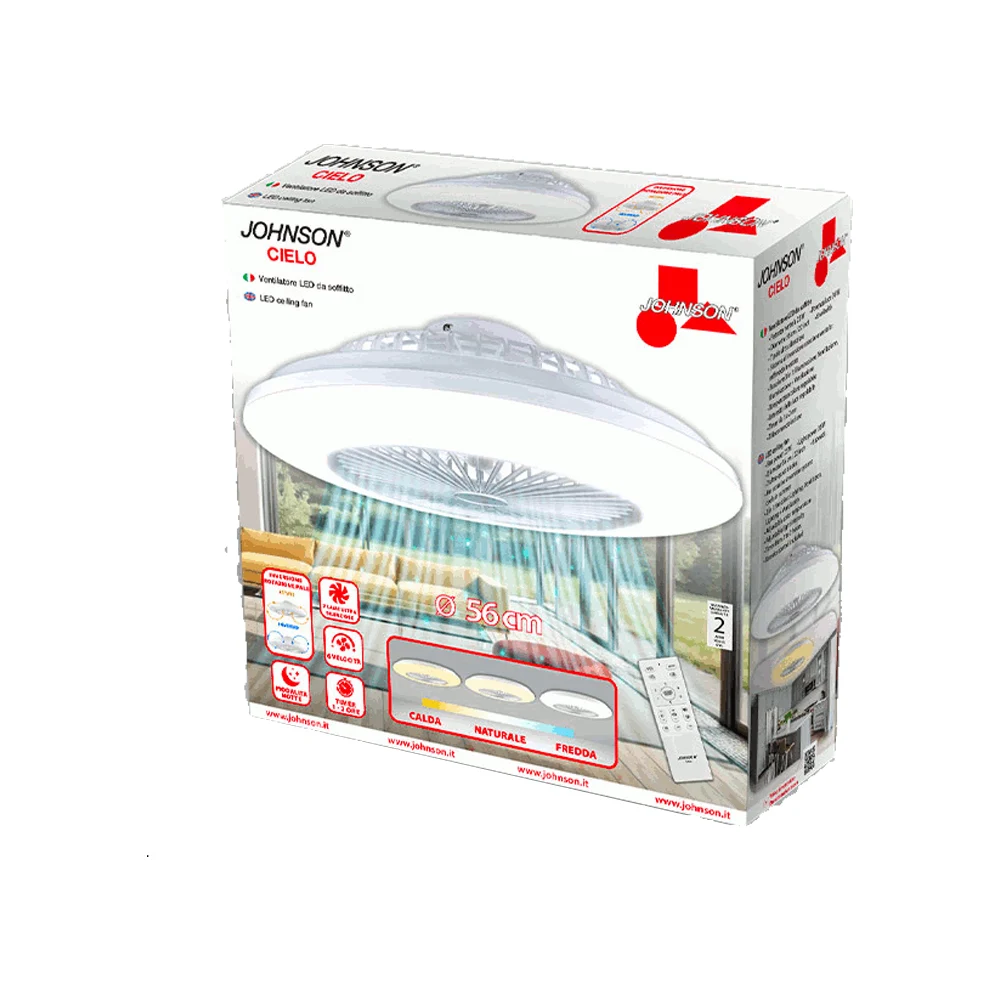 CIELO di JOHNSON è un ventilatore LED da soffitto che rinfresca e illumina ogni ambiente con stile.