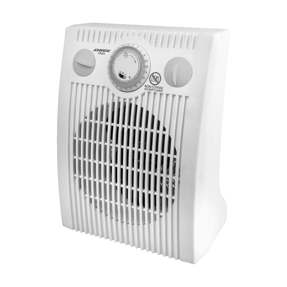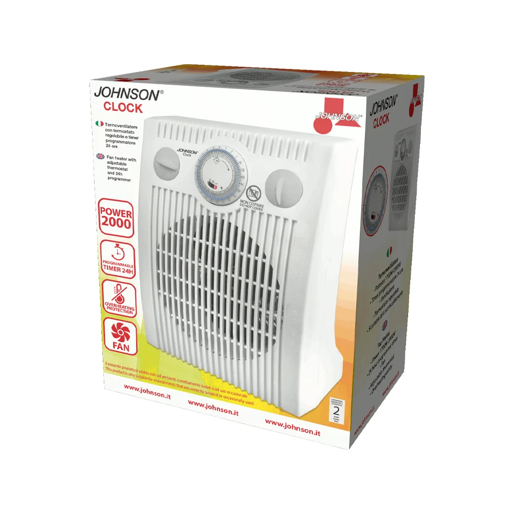 CLOCK di JOHNSON è un termoventilatore portatile con 2 livelli di potenza, funzione ventilazione e termostato regolabile.