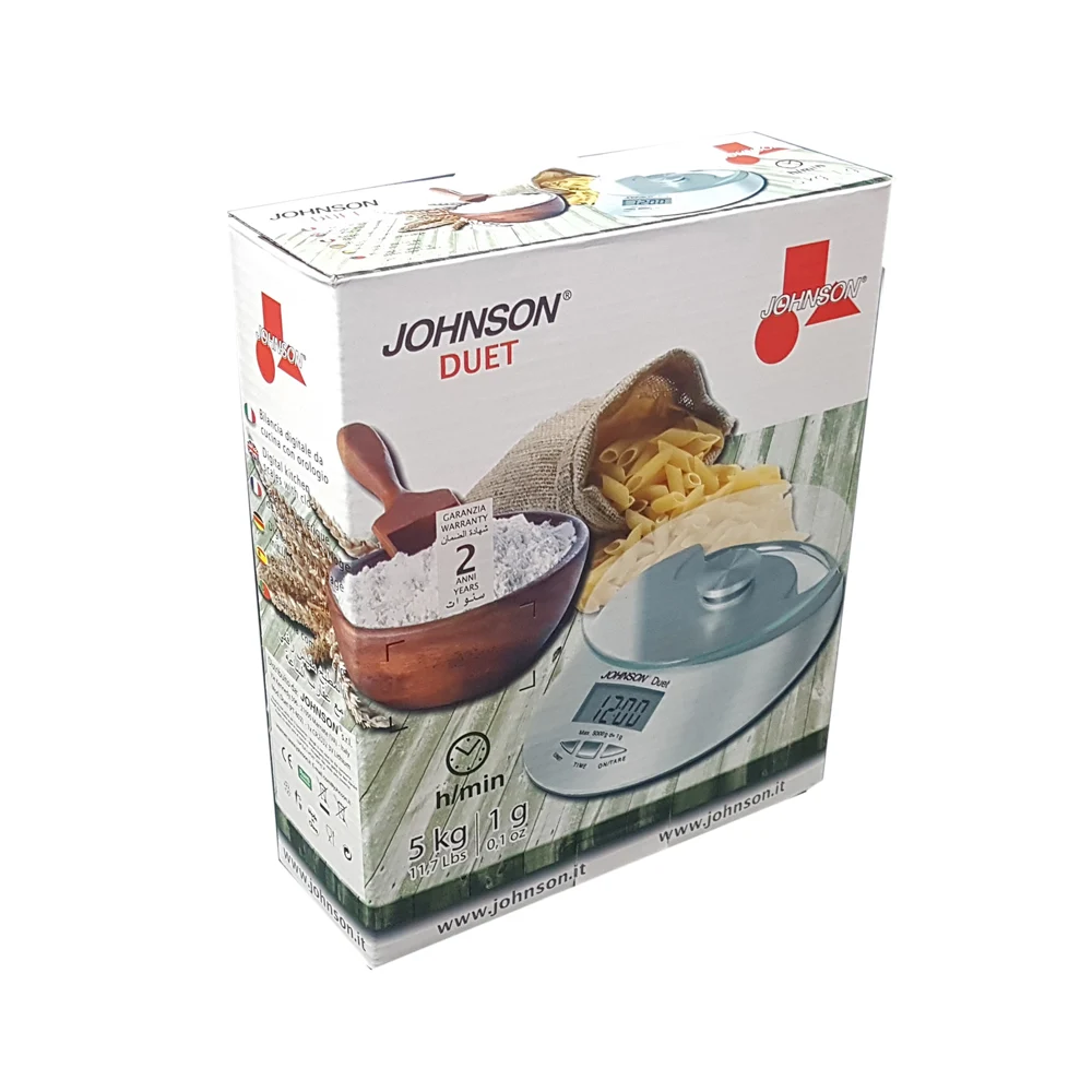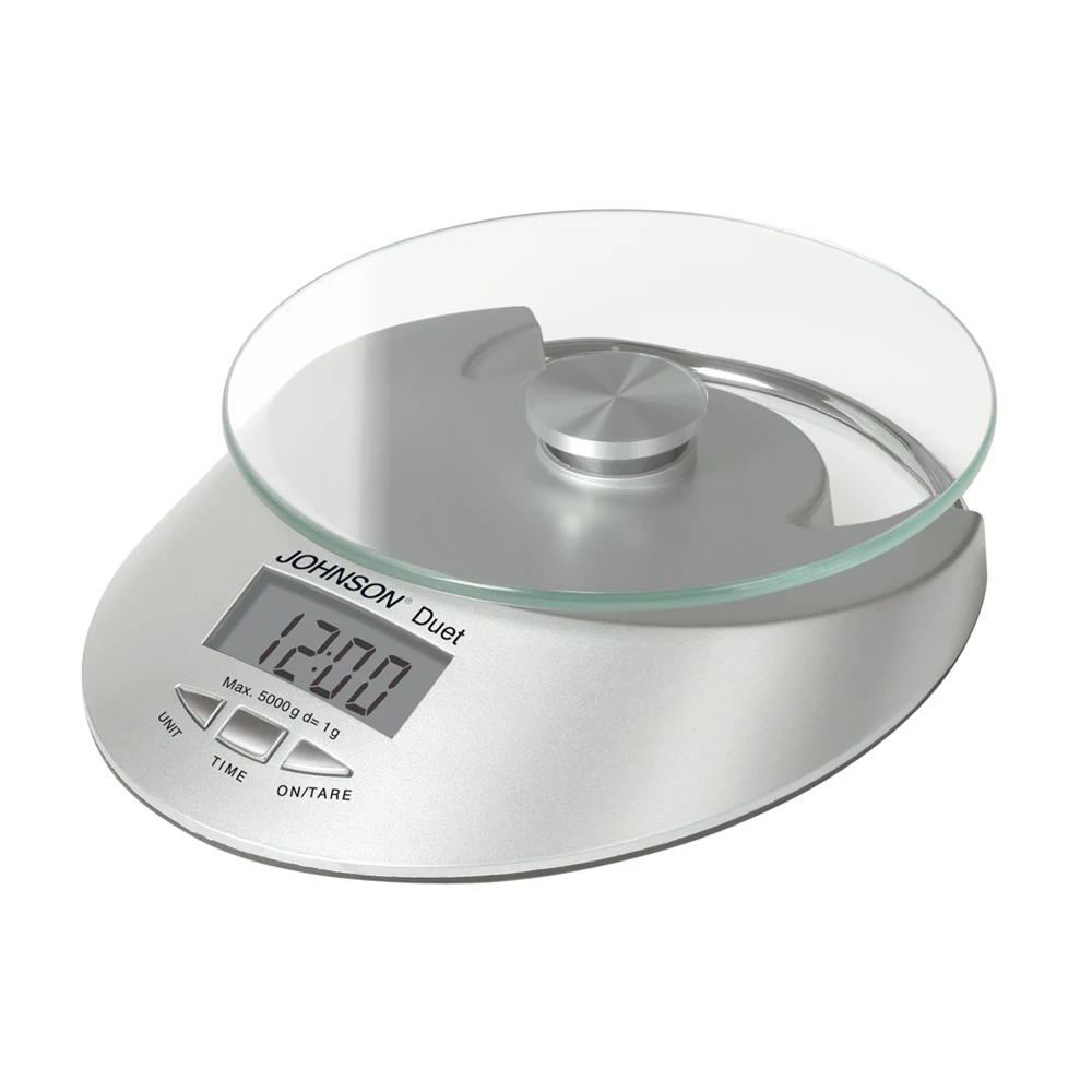 DUET, di JOHNSON, è una bilancia da cucina compatta e precisa, ideale per misurare ingredienti con grande facilità.