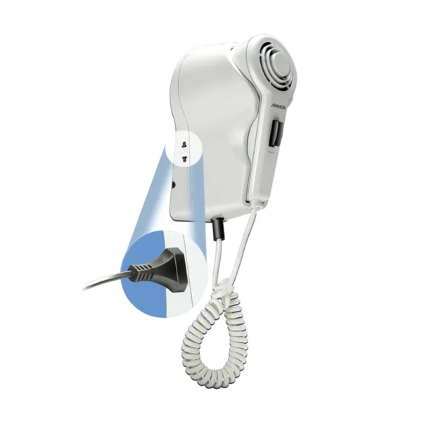 EXCELSIOR di JOHNSON è un asciugacapelli da parete dal design moderno e minimale, perfetto per hotel, B&B, agriturismi e anche per la casa.