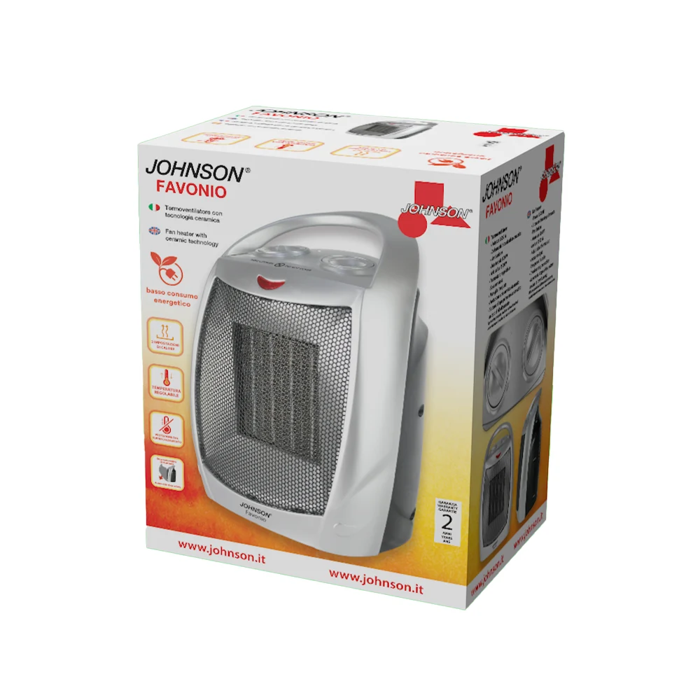 FAVONIO di JOHNSON è il termoventilatore ceramico da 1500 W progettato per riscaldare rapidamente ambienti domestici e lavorativi.
