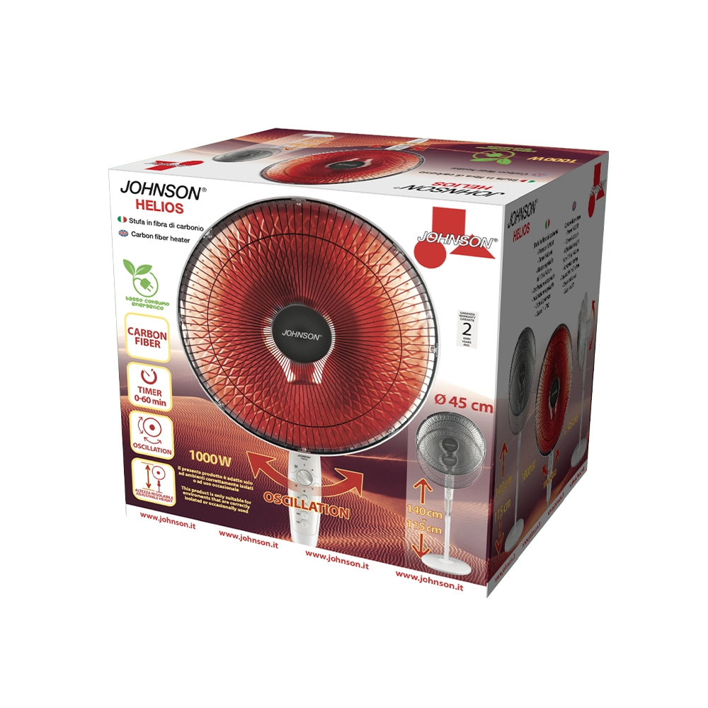HELIOS è la stufa in fibra di carbonio di JOHNSON, pensata per offrire bassi consumi e alta efficienza termica.