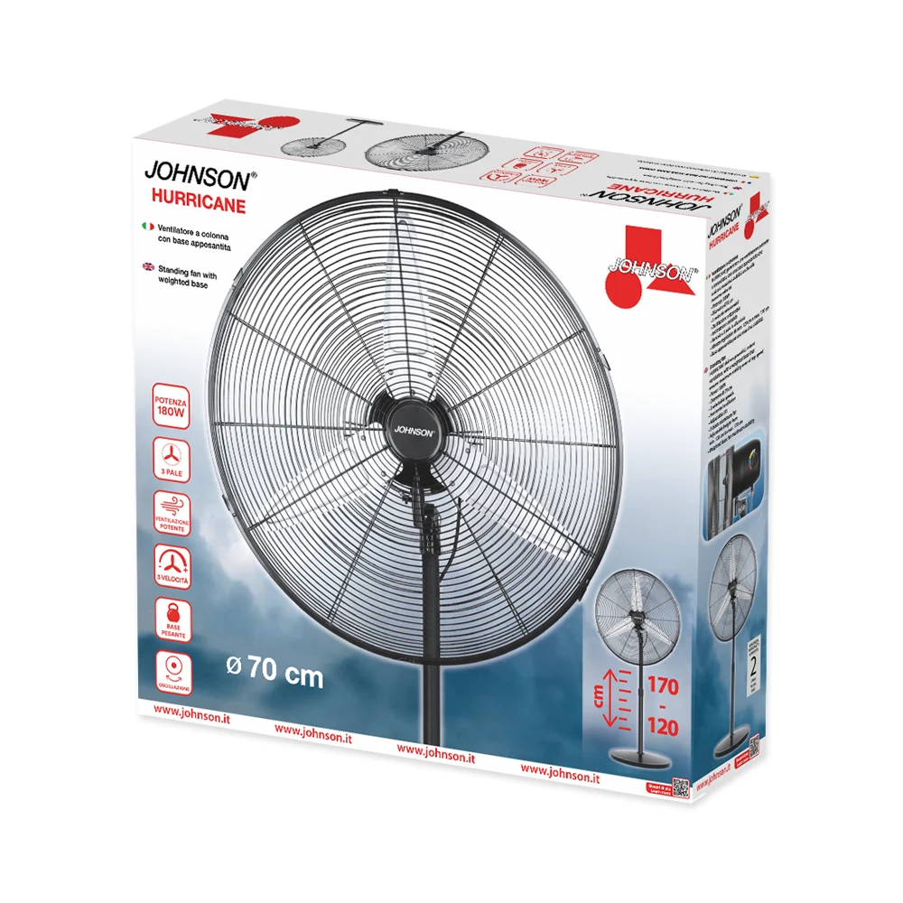 HURRICANE di JOHNSON è il ventilatore ideale per rinfrescare ambienti ampi in modo rapido ed efficace.