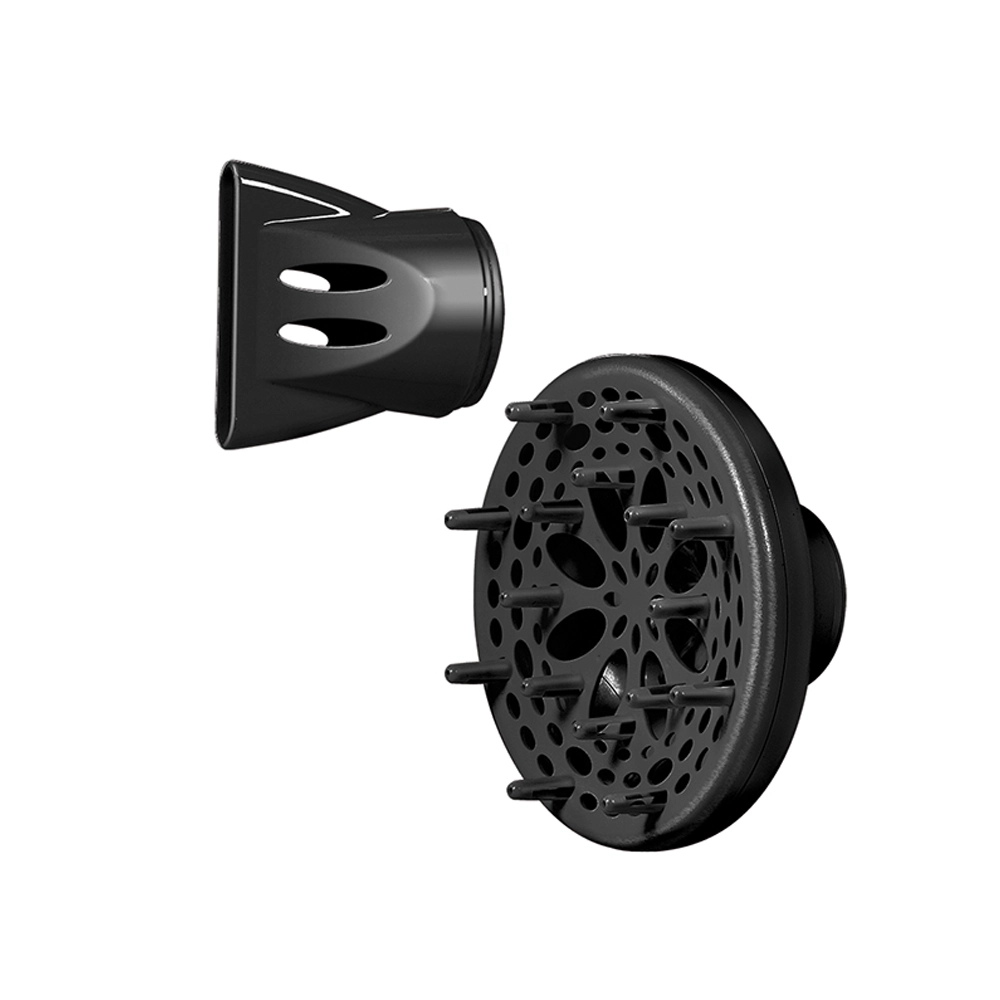 Include concentratore e diffusore per una piega precisa. Inoltre, i due interruttori permettono di scegliere tra due velocità e tre temperature. Il pulsante aria fredda completa i comandi per fissare la piega.