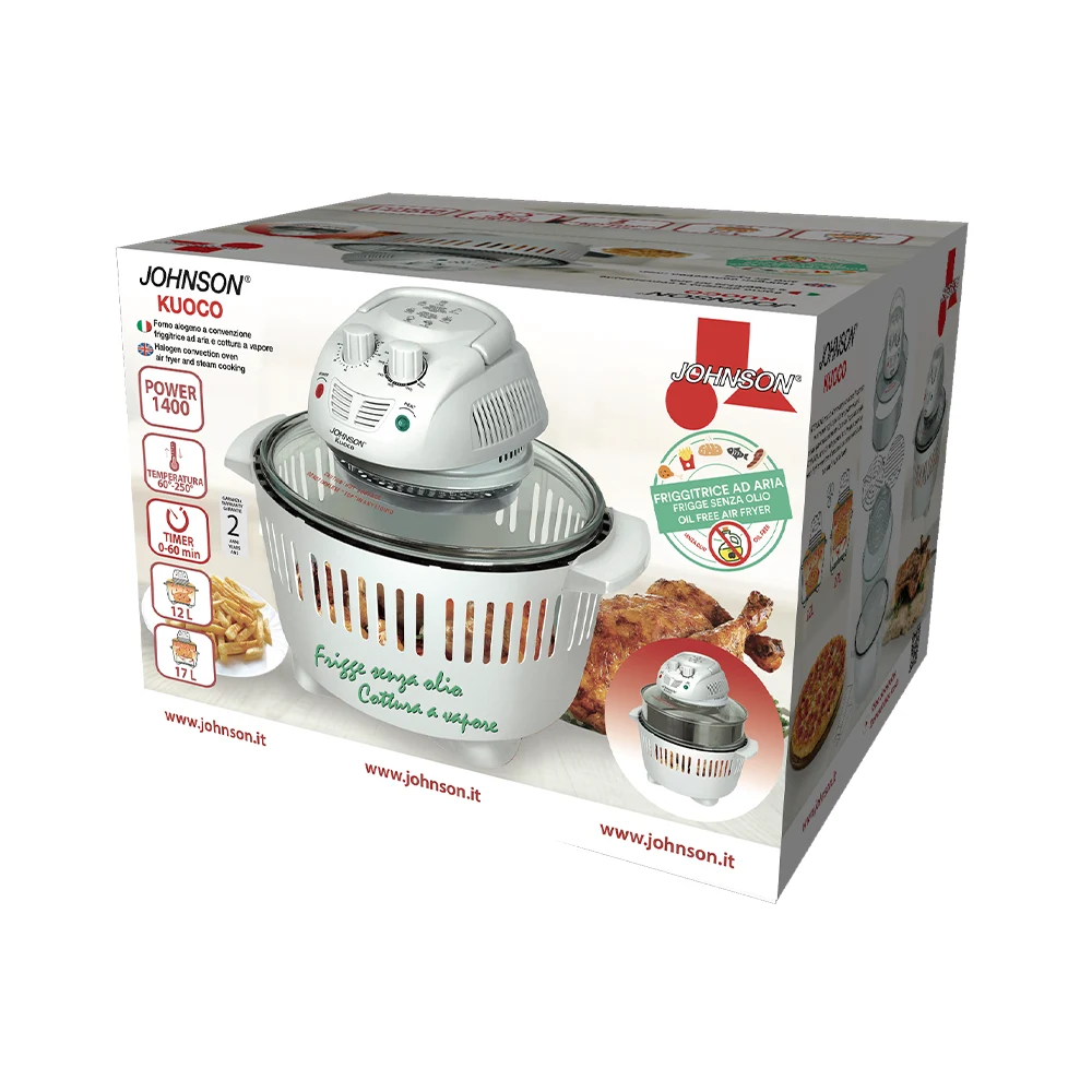 KUOCO di JOHNSON è un forno alogeno versatile. Combina i vantaggi di un forno a convenzione e di una friggitrice ad aria.