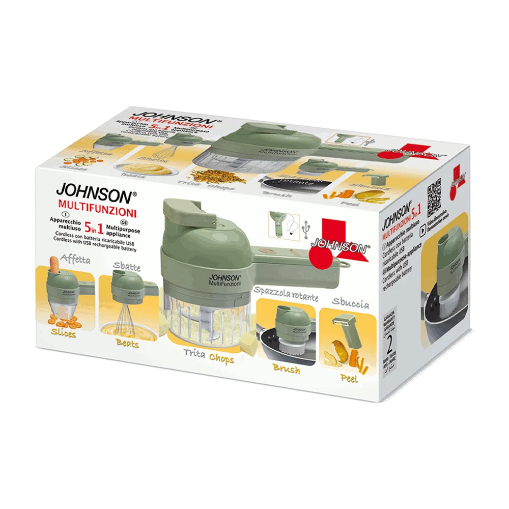 MULTIFUNZIONI 5 in 1 di JOHNSON è il pratico apparecchio multiuso con batteria ricaricabile agli ioni di litio.