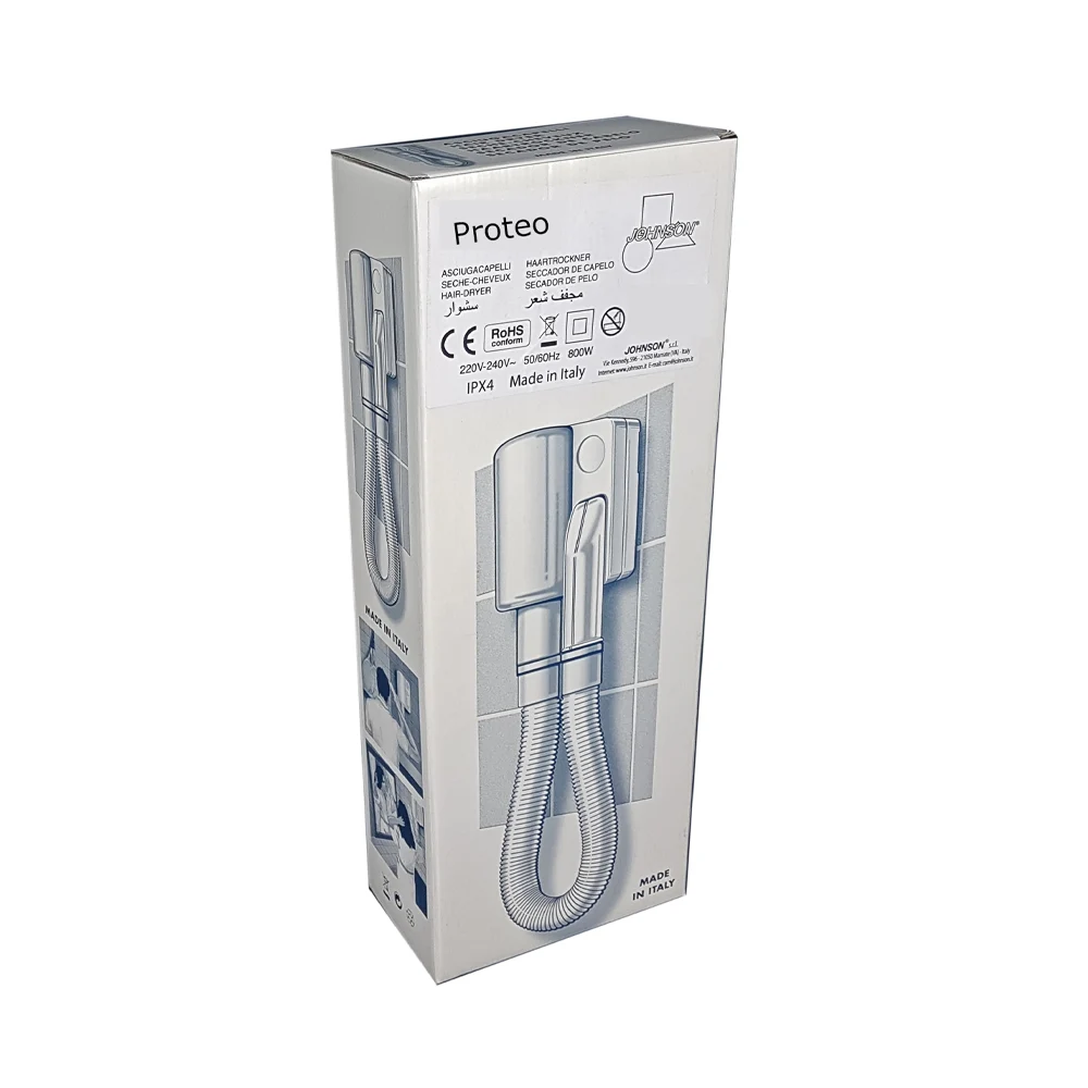 PROTEO è l’asciugacapelli murale a tubo di JOHNSON ELETTRODOMESTICI, pensato per offrire praticità, sicurezza e affidabilità anche negli spazi più ridotti.