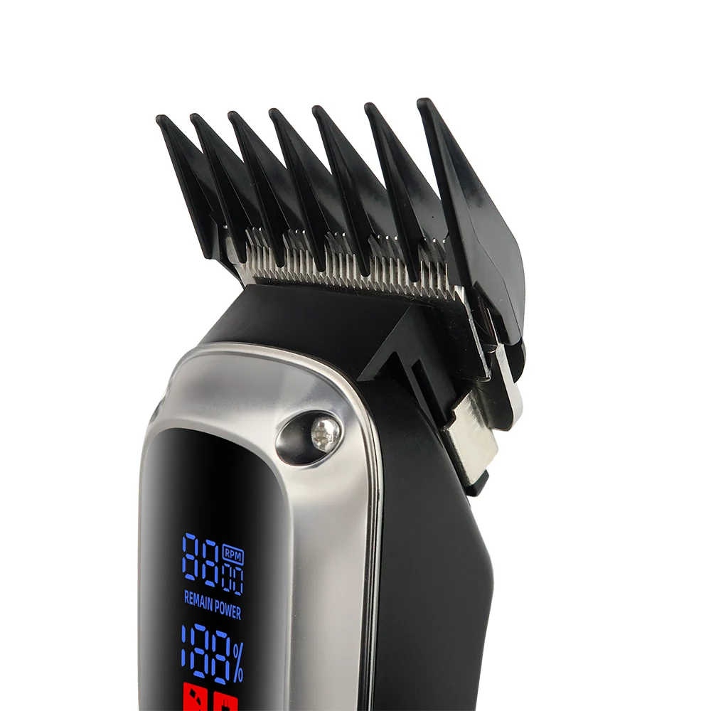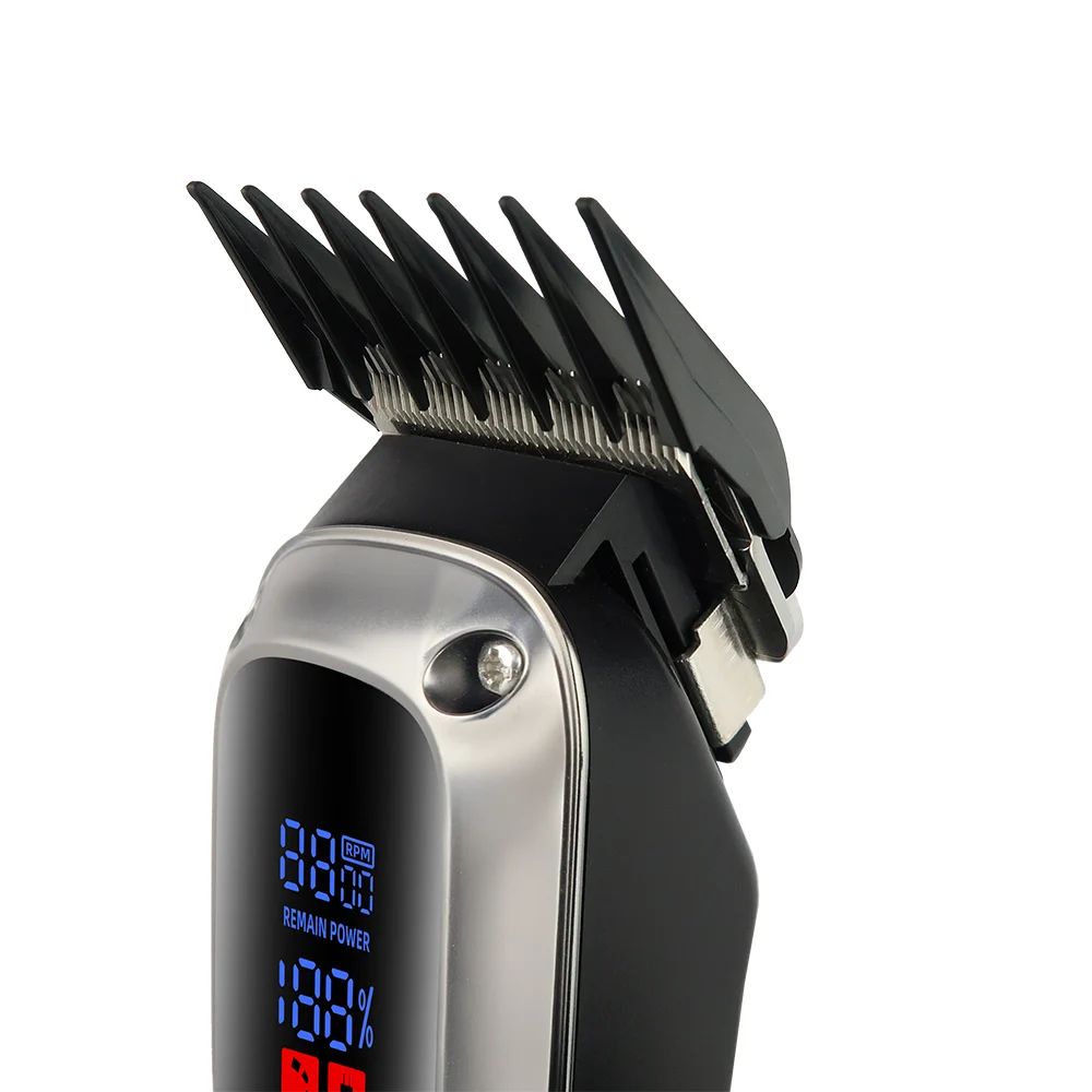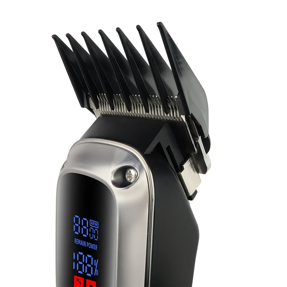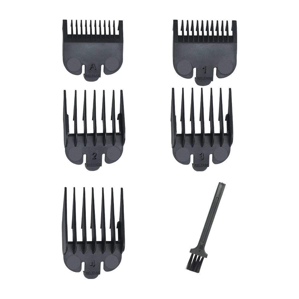 Include 5 pettini guida (3 mm, 4,5 mm, 6 mm, 10 mm, 13 mm) per regolare la lunghezza dei capelli o delle basette secondo le tue esigenze.