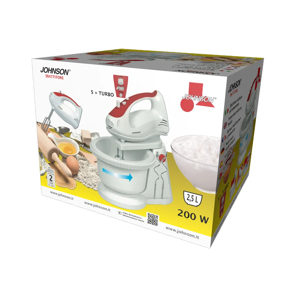 SBATTITORE di JOHNSON è l’aiuto perfetto in cucina per sbattere, miscelare e impastare con facilità, velocizzando ogni preparazione.