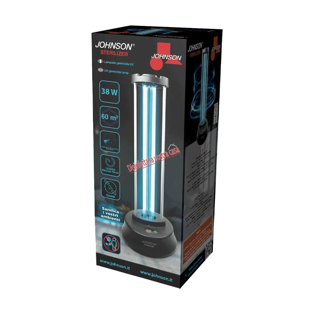 STERILIZER di JOHNSON è una lampada germicida a raggi UV-C e ozono, ideale per sterilizzare ambienti domestici e locali pubblici come uffici, hotel e scuole.