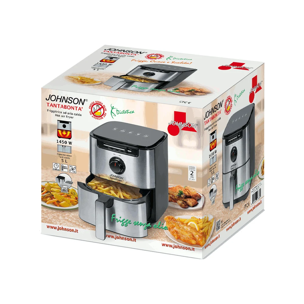 TANTABONTÀ è una delle friggitrici ad aria di JOHNSON. È pensata per cucinare in modo pratico e più sano ogni giorno.