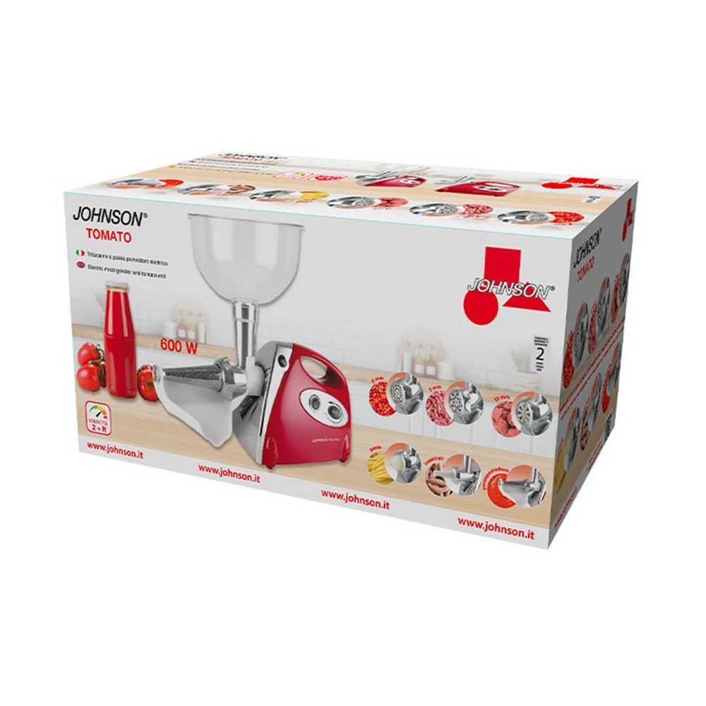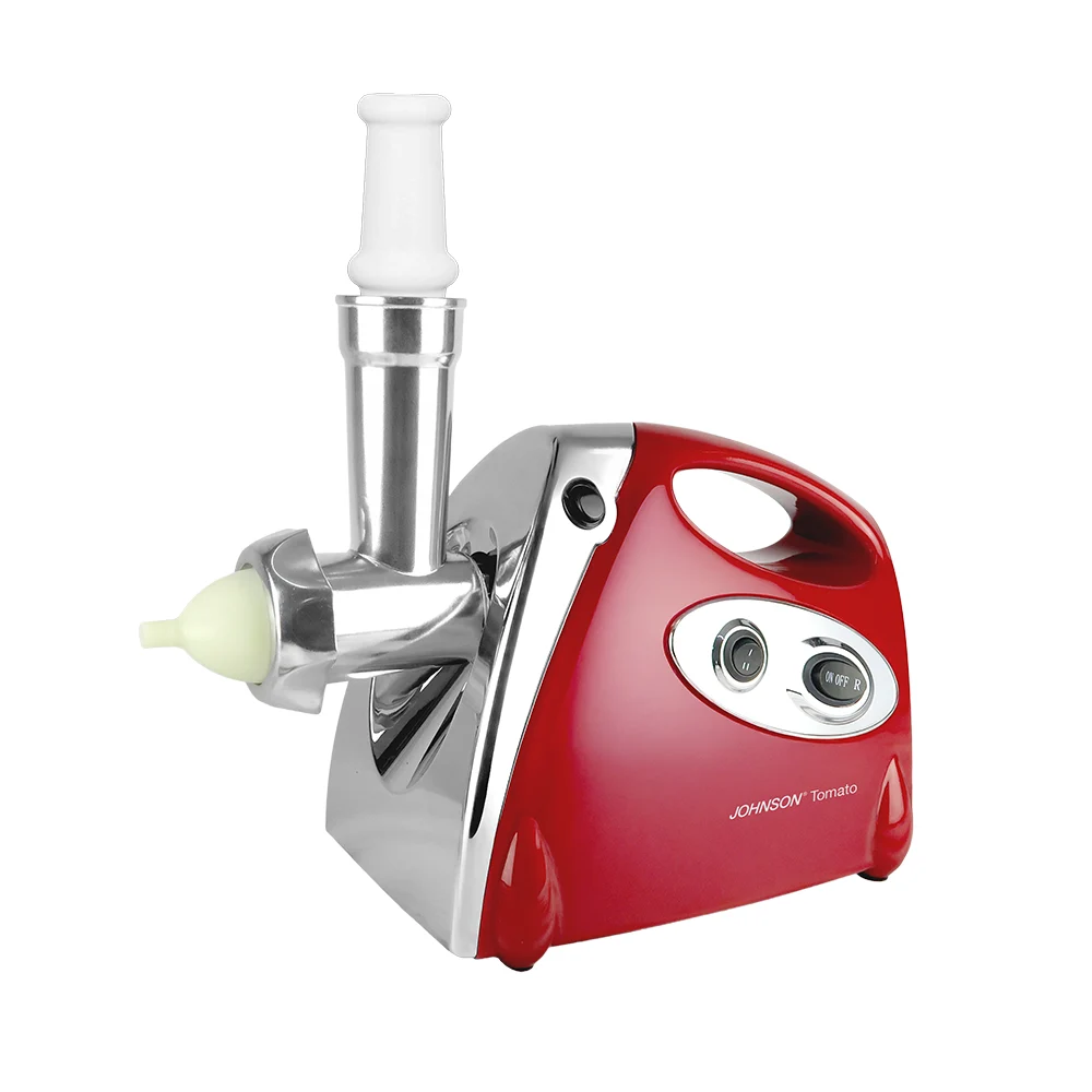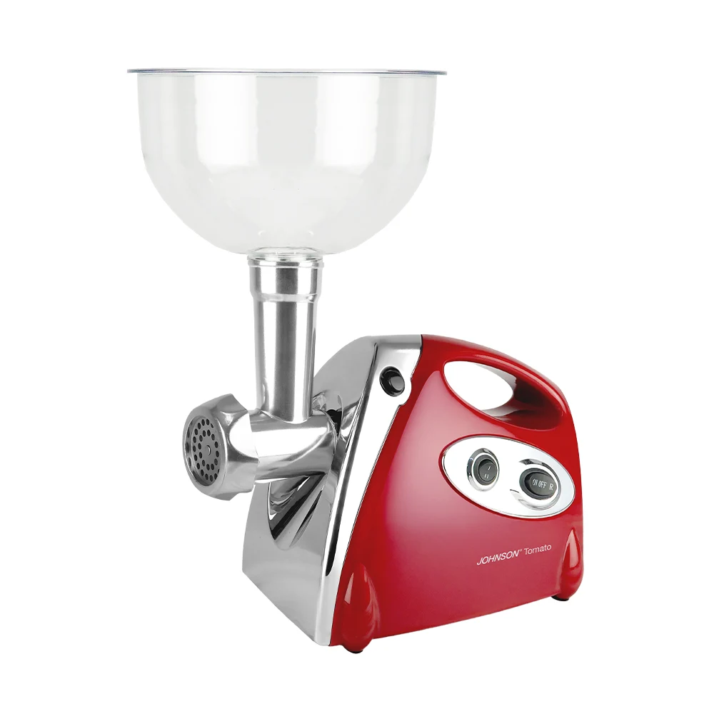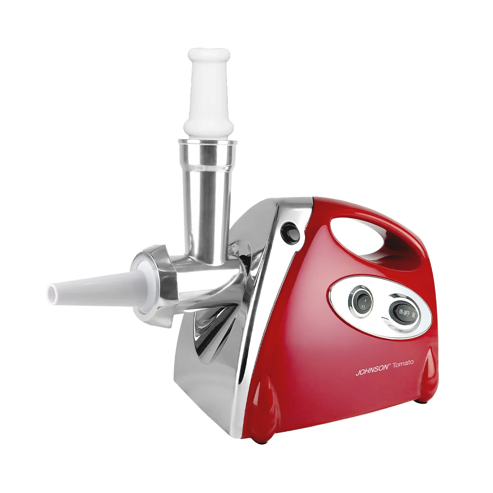 TOMATO è il passapomodoro e tritacarne elettrico di JOHNSON. La macchina è ideale per trasformare il pomodoro in una passata fresca e genuina direttamente a casa. È progettata per l’uso in appoggio su tavolo, pratica e stabile durante la lavorazione.