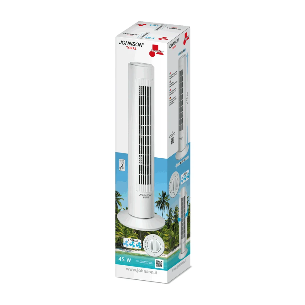 TORRE di JOHNSON è il ventilatore a torre compatto ideale per combattere caldo e afa. Offre un flusso potente e costante di aria fresca.