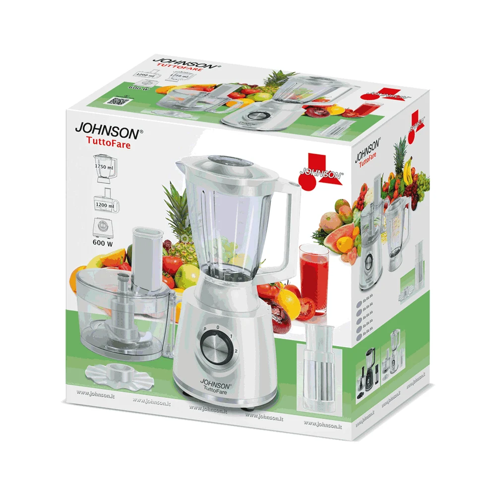Con il frullatore JOHNSON TUTTOFARE prepari salse, zuppe e cocktail in pochi istanti. È ideale anche per tritare il ghiaccio e la frutta senza fatica.