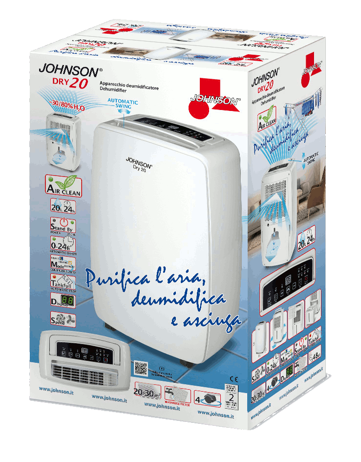 DRY 20L di JOHNSON Elettrodomestici riunisce le migliori caratteristiche di un deumidificatore in un design alla moda con un display totalmente automatico con LED di funzionamento. Il bianco totale della sua superficie lucida ne risalta il gusto minimale adatto ad ogni stile abitativo. Le giuste proporzioni lo rendono facilmente … Leggi tutto Johnson video Dry20