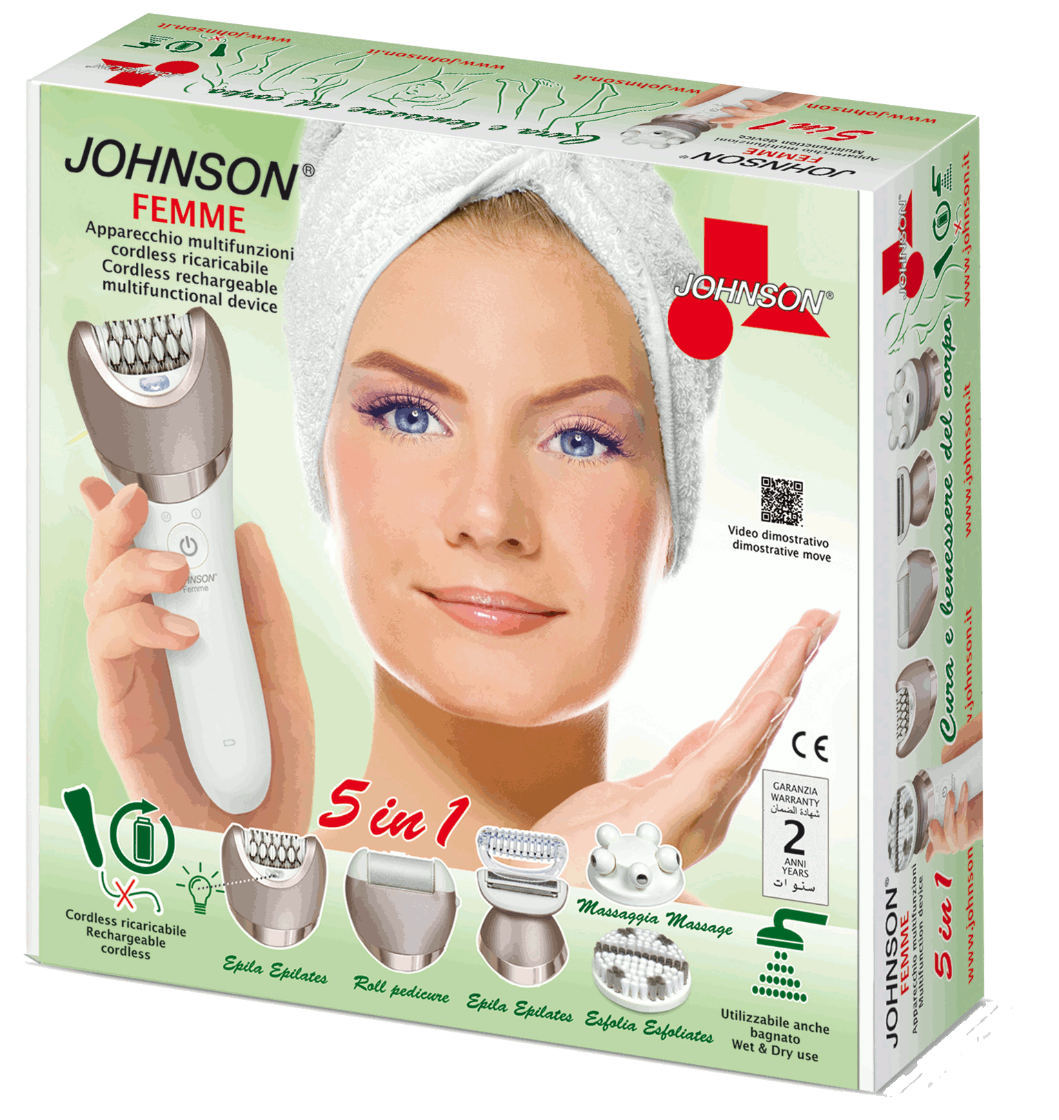 FEMME apparecchio multifunzione 5 in 1 di JOHNSON con cordless ricaricabile. FEMME è facilissimo adoperarlo in modo semplice e veloce. Ha 5 testine intercambiabili per avere a disposizione tutta la comodità in una volta sola. I diversi accessori ti danno la possibilità di esfoliare, depilare e massaggiare corpo e viso, … Leggi tutto Johnson video Femme