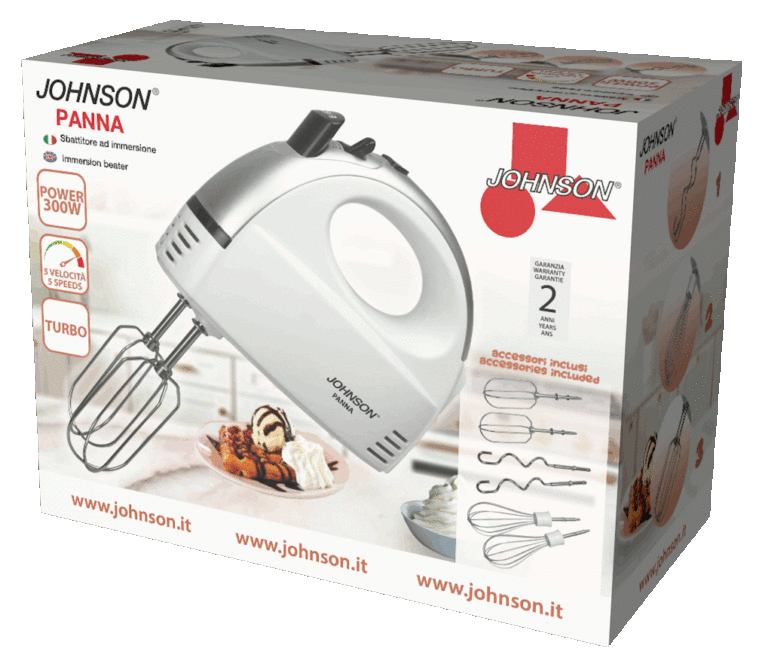 Sbattitore elettrico PANNA di JOHNSON, compatto e maneggevole, perfetto per tutte le tue esigenze in cucina. Leggero e durevole, facile da usare è stato realizzato con 5 velocità + TURBO con un motore da 300W. È fornito di 3 tipi di fruste in acciaio: frusta a spirale per impasti … Leggi tutto Johnson video Panna